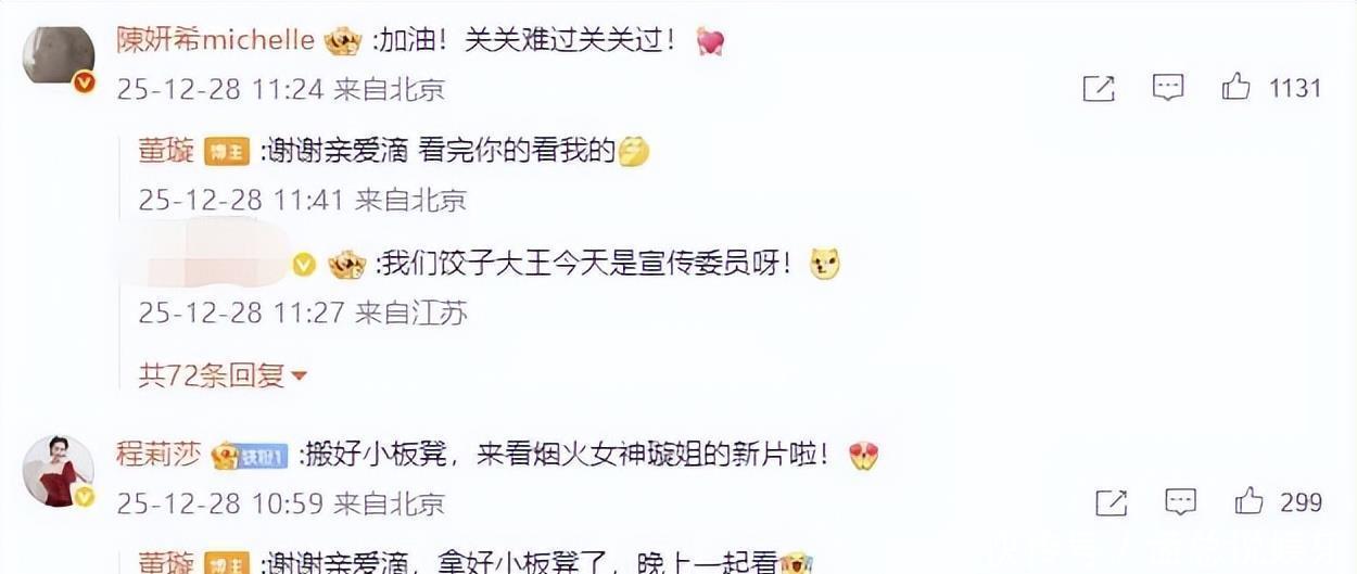 董璇主演的新剧《不期而遇的生活》开播,评论区被大半个娱乐圈刷屏了。姐妹淘佟丽娅、孟子义、陈妍希、周也、沈月、陈都灵……齐齐送上支持,佟大为、郭晓冬夫妇等一众好友评论转发,更有她的现任老公张维伊和“喜人”伙伴们卖力吆喝。
